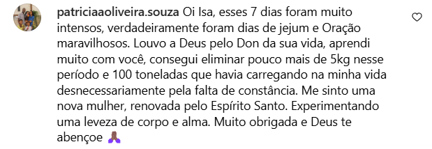 Criadora de um método próprio que integra jejum, nutrição e direção espiritual, para emagrecer com consciência, leveza e constância.